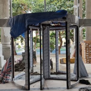 Thiết kế của cửa xoay tự động có tính thẩm mỹ cao với khung inox cong vòm và các tấm kính cường lực trong suốt. Đối tượng đi đường có thể dễ dàng quan sát được không gian ở bên trong showroom, sảnh khách sạn, trung tâm thương mại thông qua các tấm kính này. Loại cửa tự động này giúp công trình hiện đại trở nên hiện đại, sang trọng hơn khi lắp đặt loại cửa này.